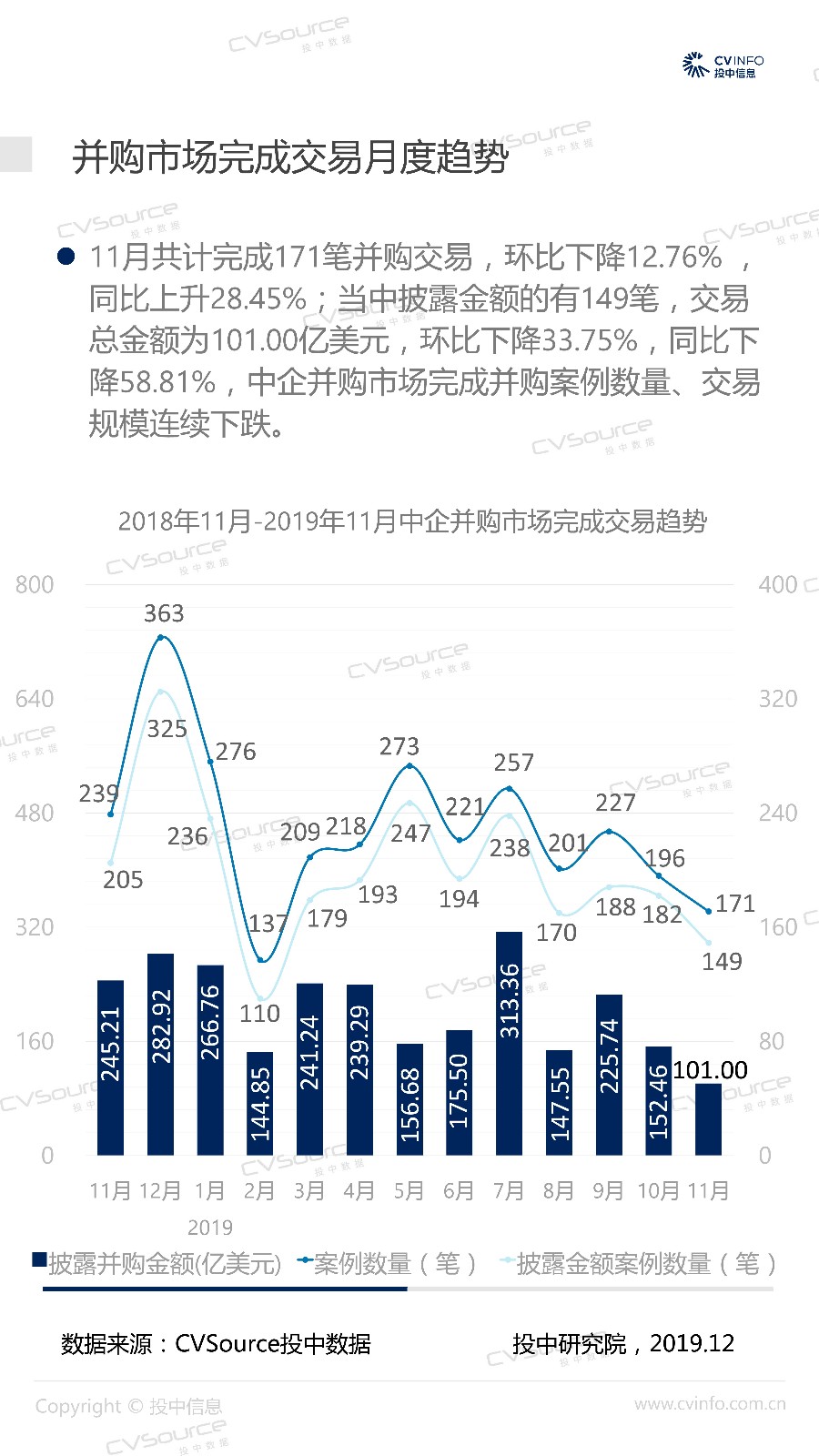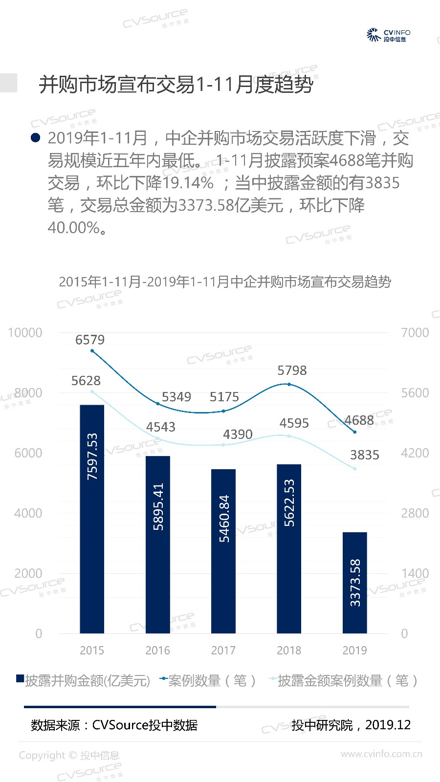 投中统计:并购宣布交易金额近五年最低,私募基金退出数量浮动较大