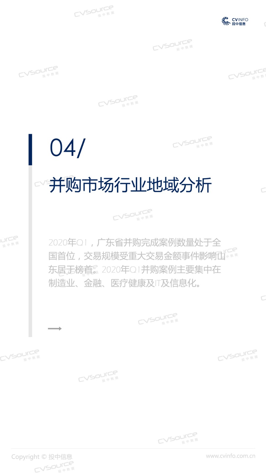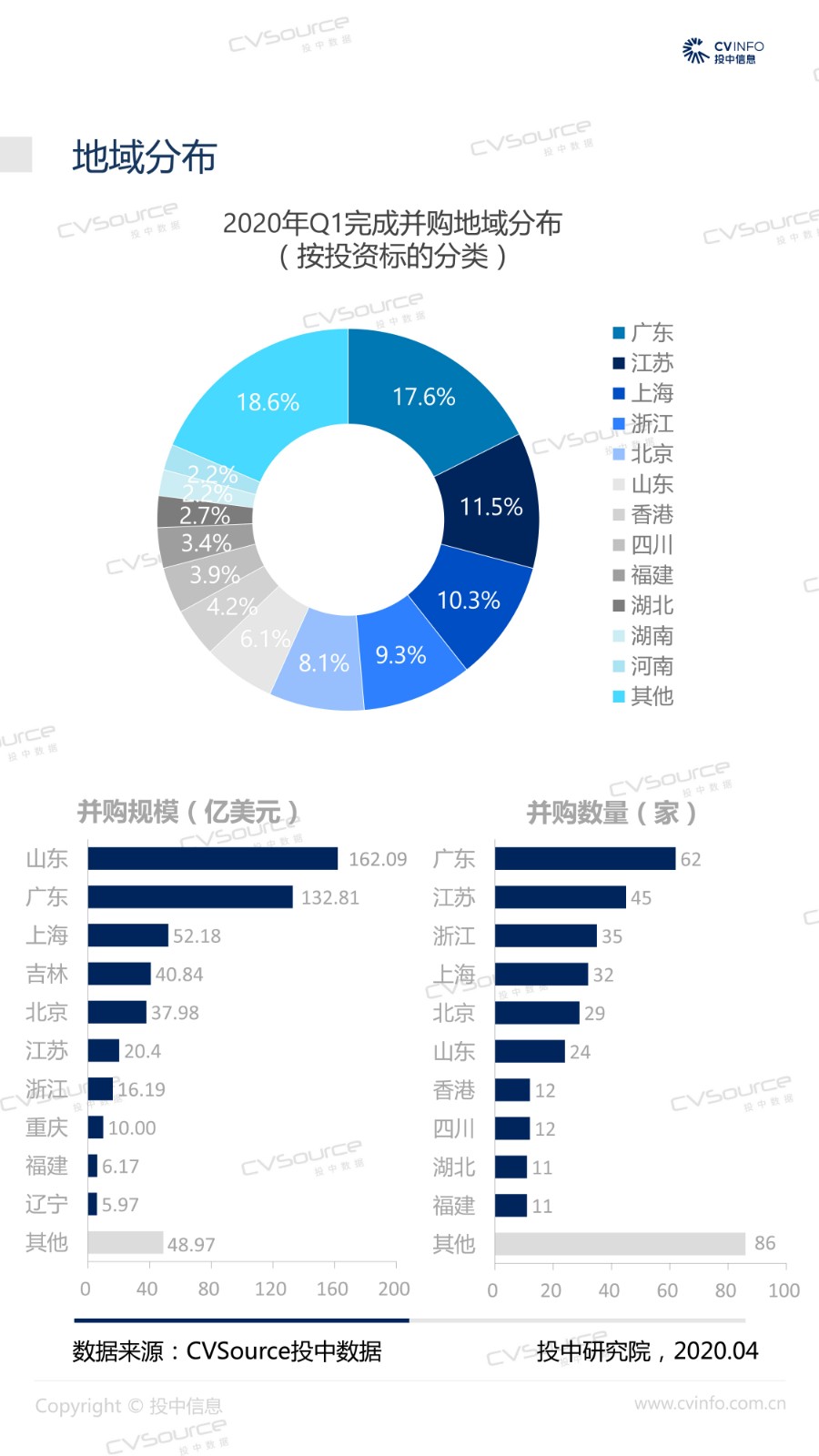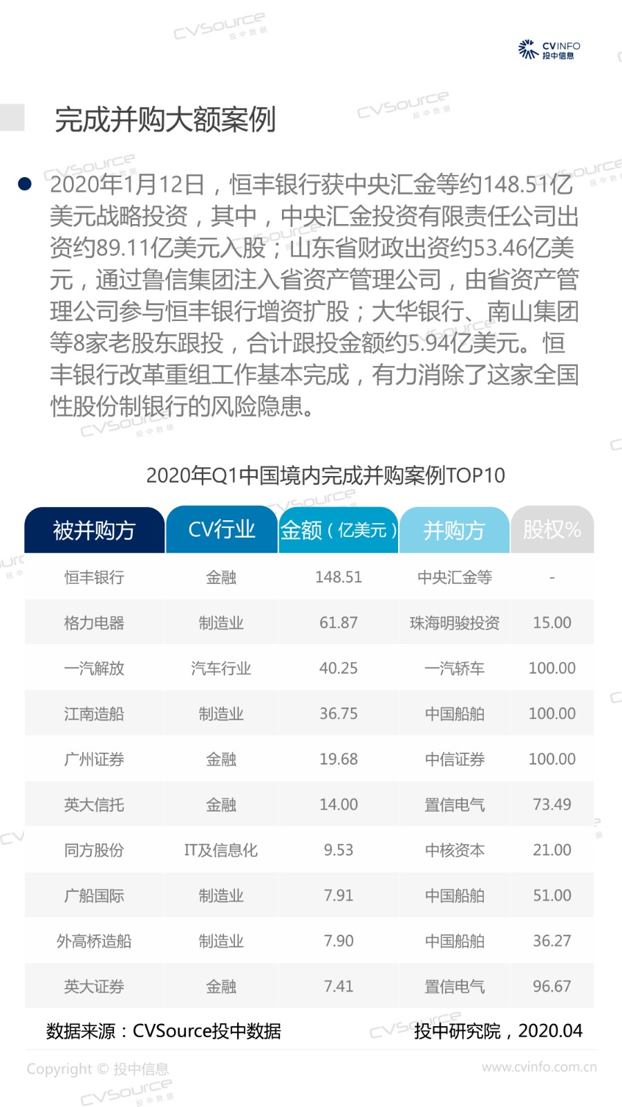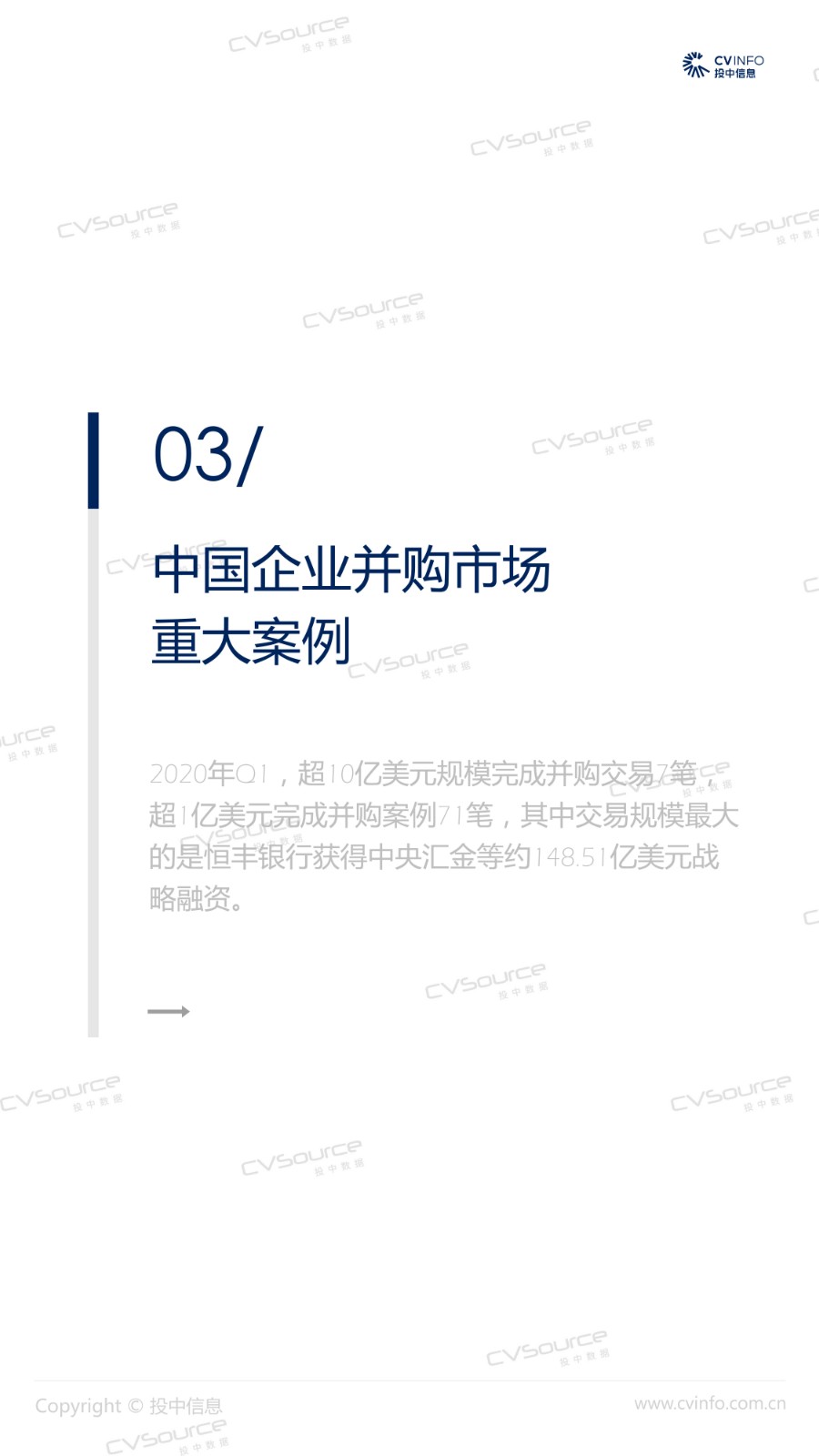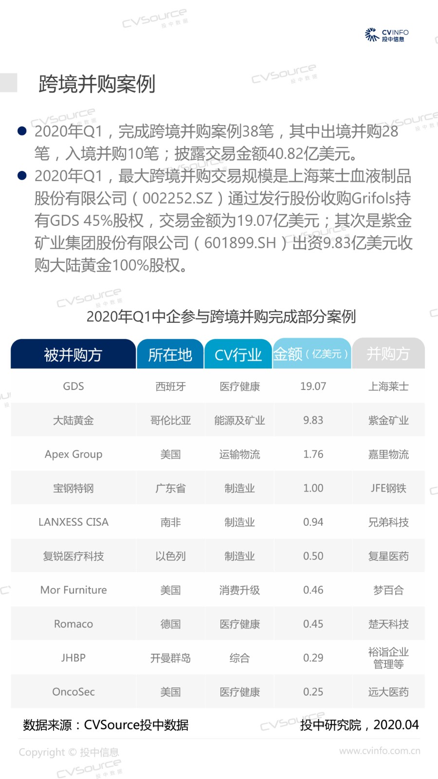 2020年Q1,中企并购市场宣布交易案例数量和交易规模大幅下降,中企并购市场完成并购案例数量大幅下滑,交易规模小幅下降。