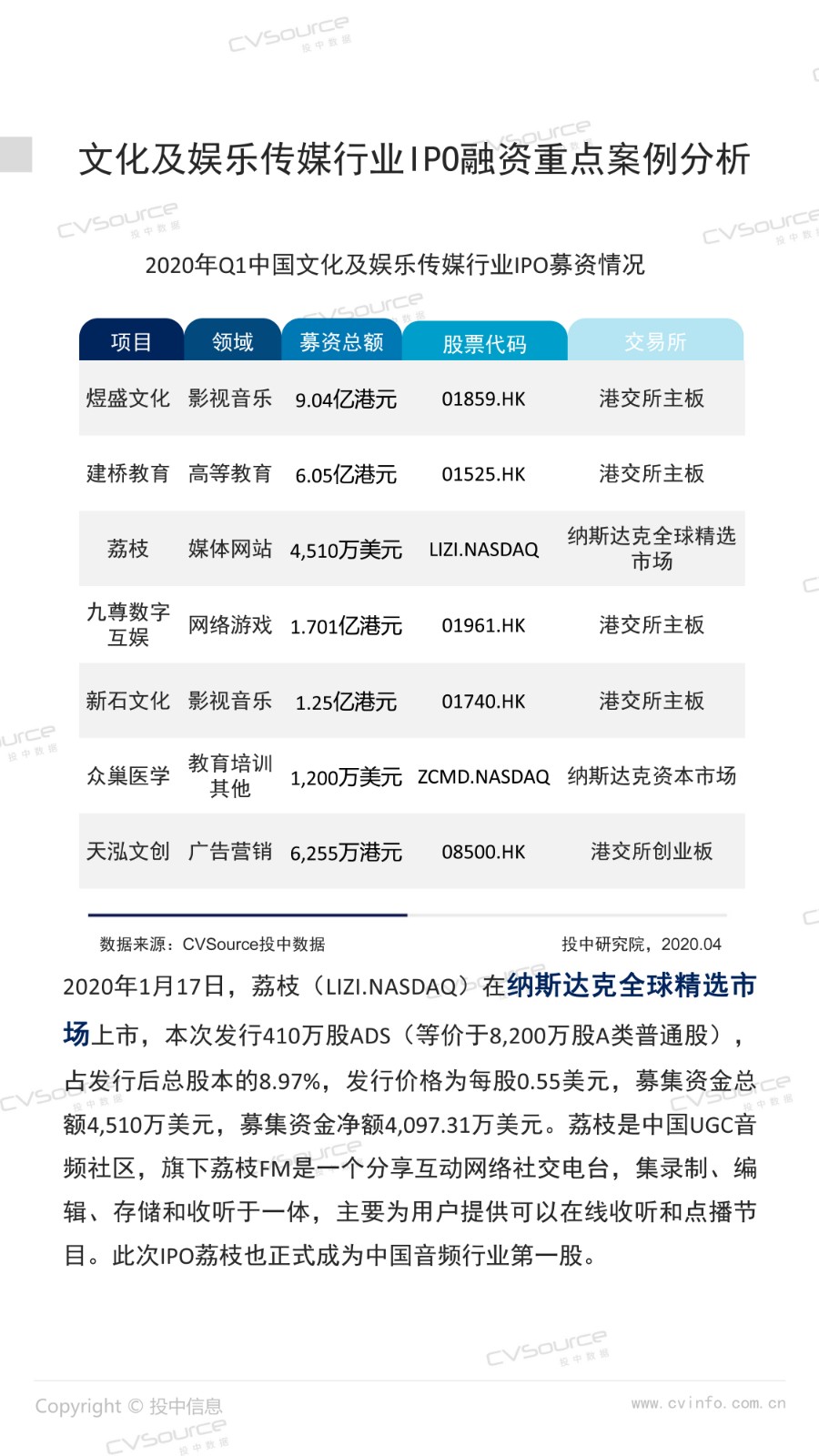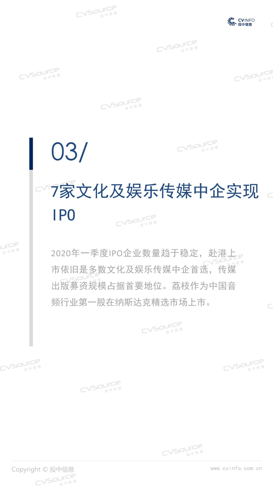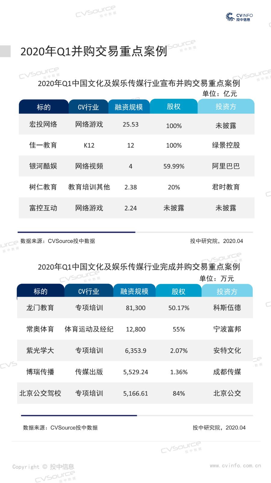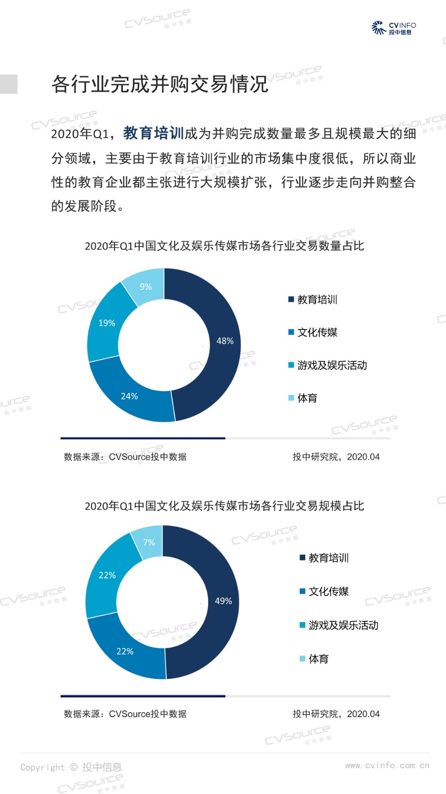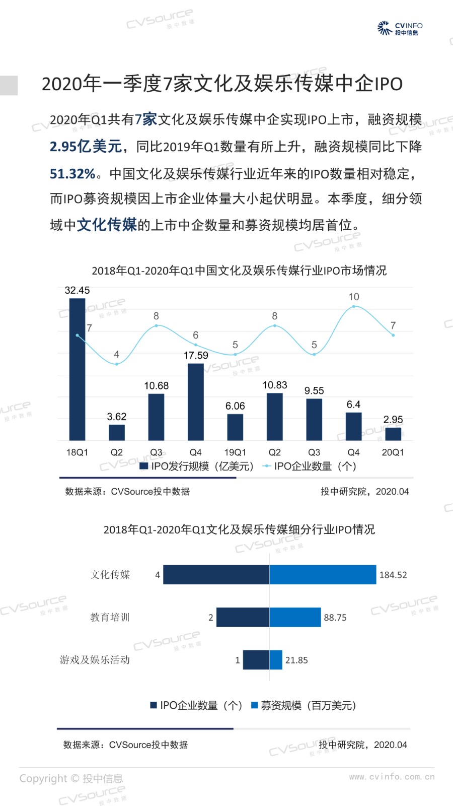 2020年Q1文化及娱乐传媒融资数量遇冷,在线教育融资规模逆势增长四成