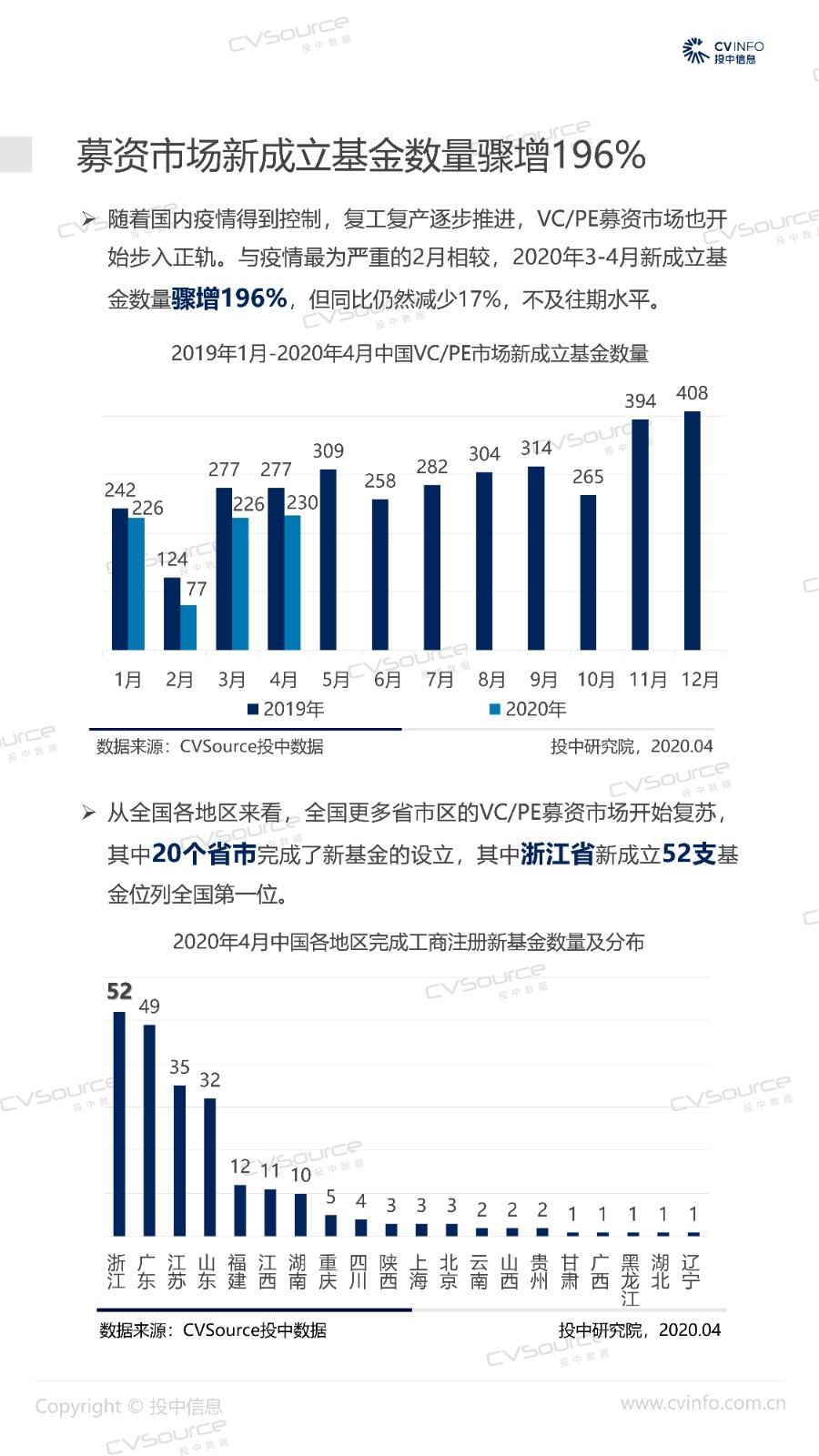 投中统计:4月中国VC/PE市场逐步回温,新成立基金数量骤增196%
