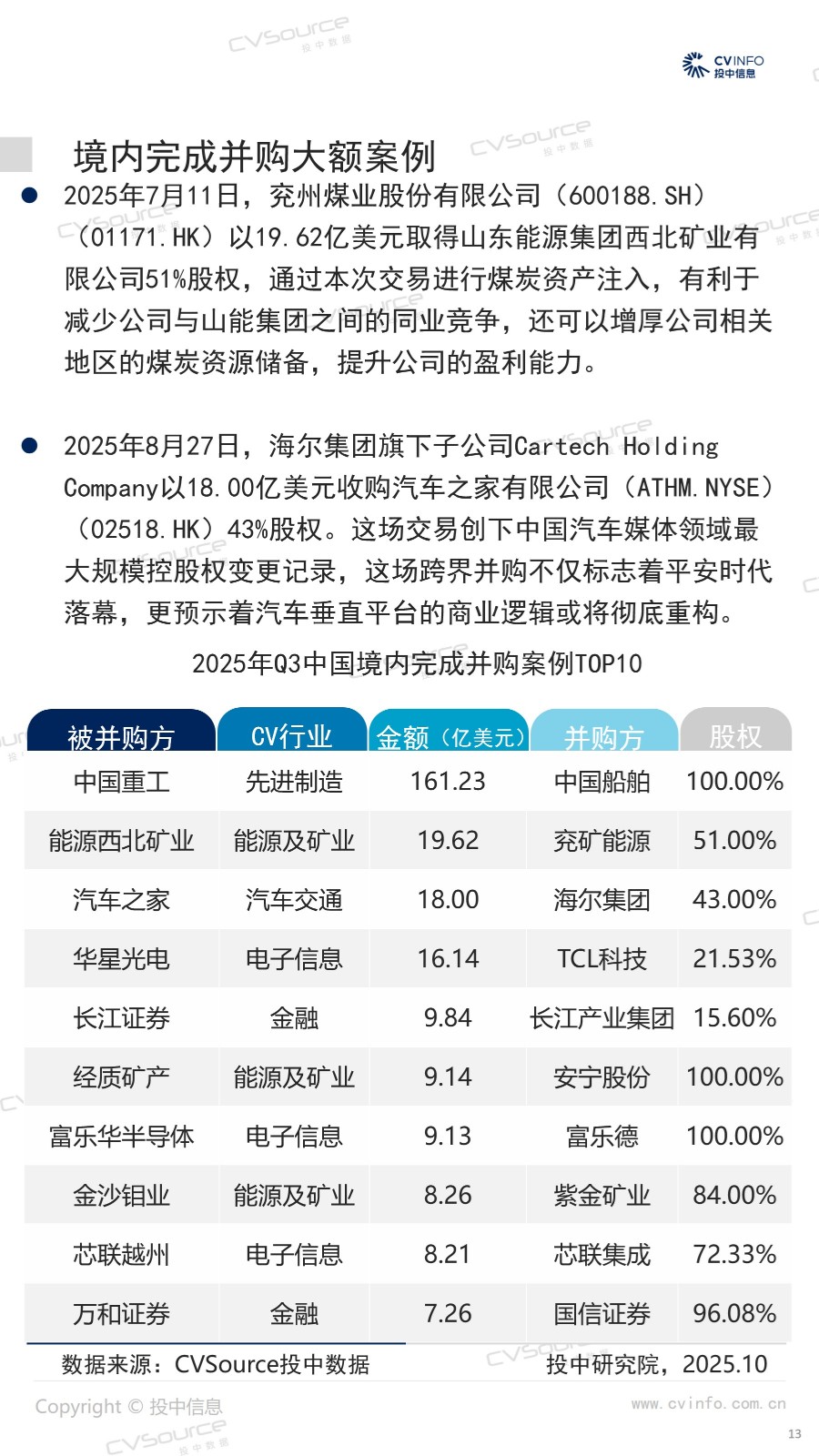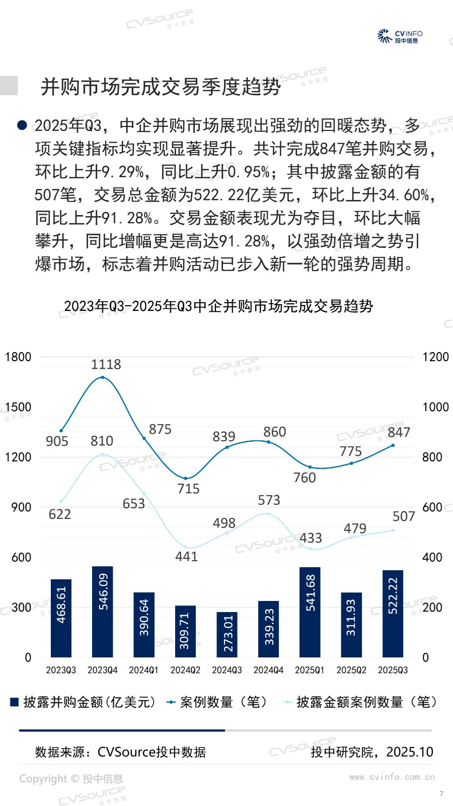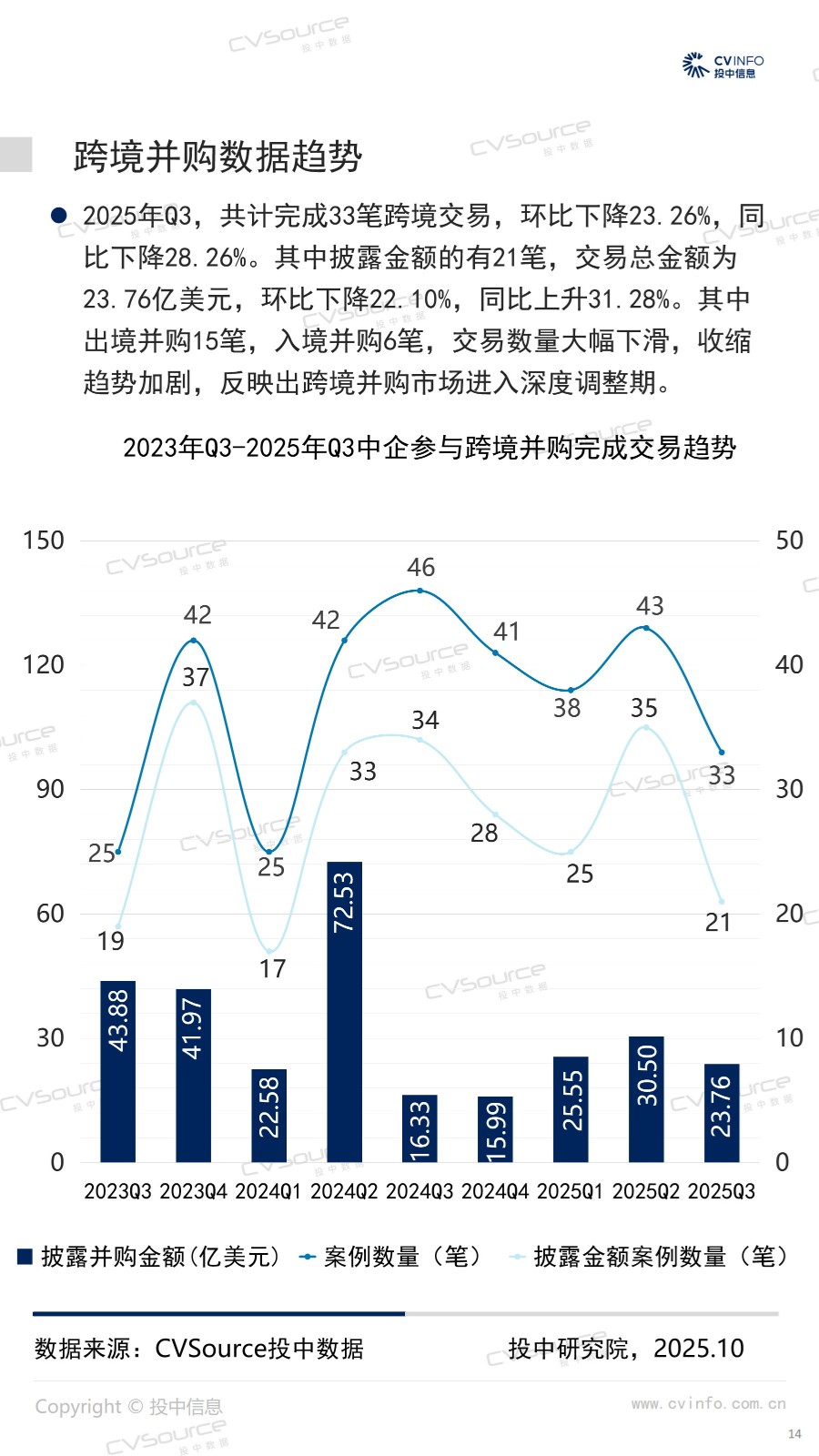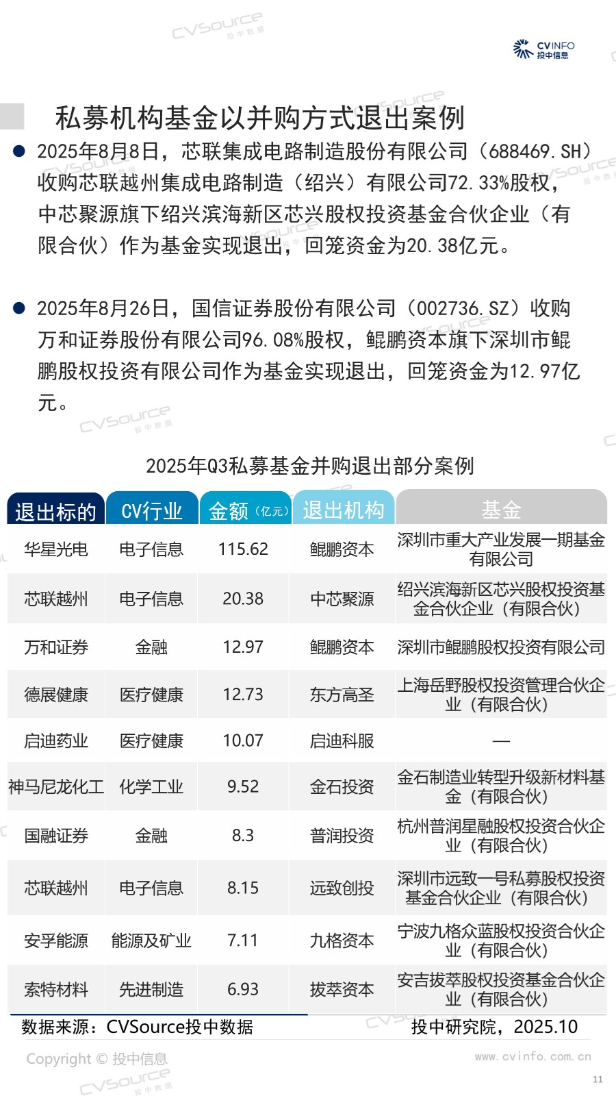 2025年Q3,中企并购市场整体呈现“宣布冷、完成热”的结构性特征,本季度宣布交易金额创25年新低,凸显单笔交易规模缩水及市场信心不足,但完成交易金额同比激增91.28%,呈现“强劲倍增”之势。 本季度通过并购实现退出的私募基金达到158支,其退出数量与回笼资金均攀升至历史新高,市场表现十分强劲。