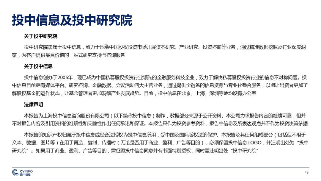 投中研究院隶属于投中信息,致力于围绕中国股权投资市场开展资本研究、产业研究、投资咨询等业务,通过精准数据挖掘及行业深度洞察,为客户提供最具价值的一站式研究支持与咨询服务。