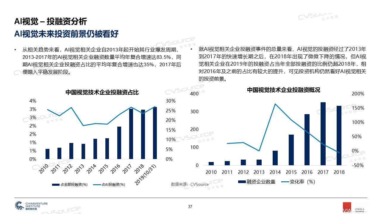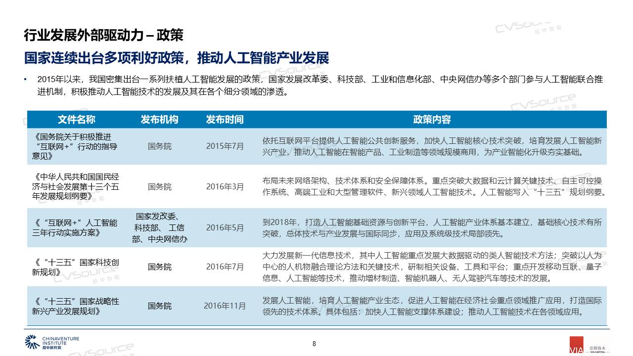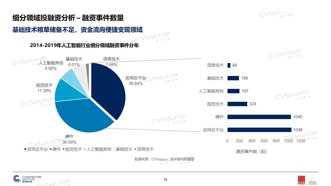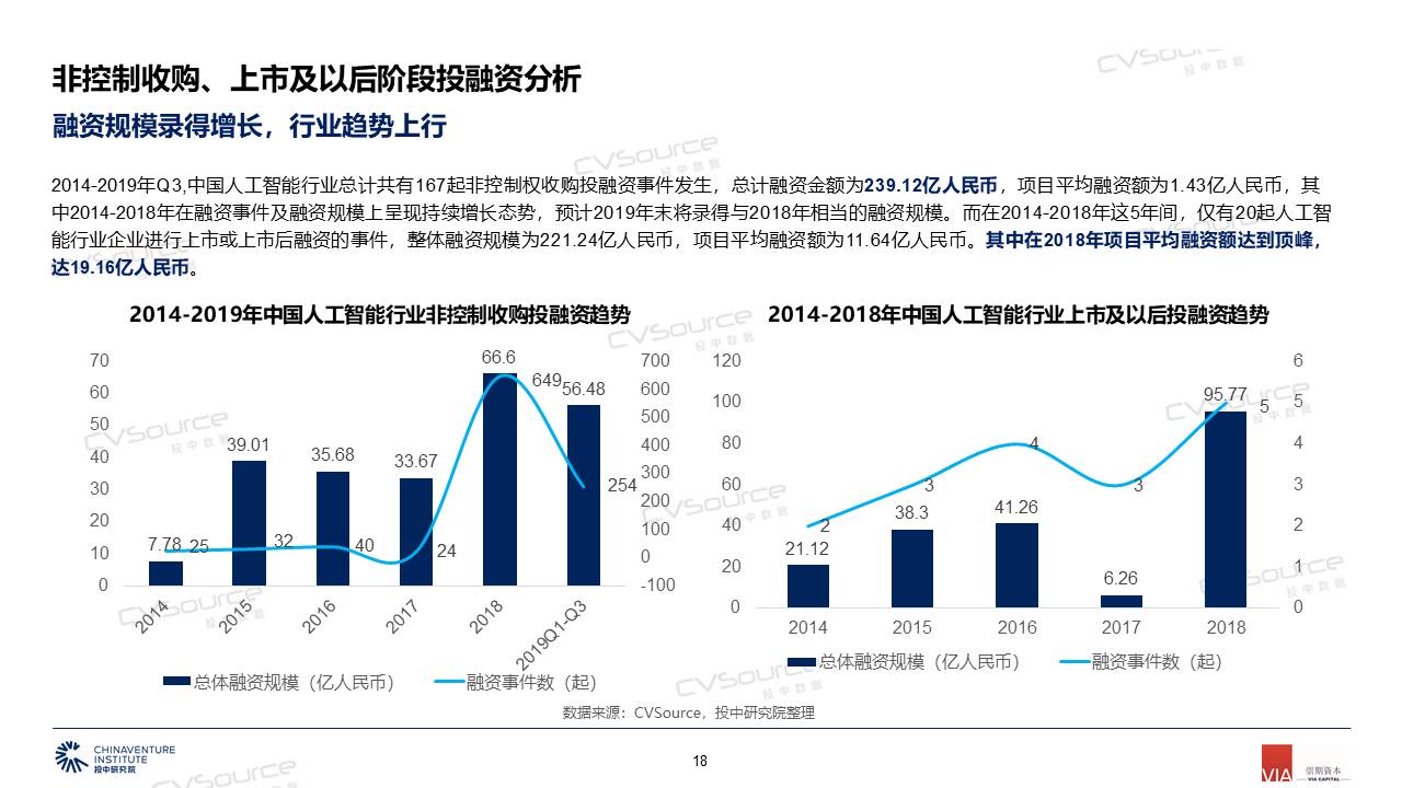 2015年以来,我国密集出台一系列扶植人工智能发展的政策,2017年《新一代人工智能发展规划》 的颁布,标志着人工智能上升至国家战略的高度。2014-2018年,布局人工智能赛道的投资机构数量不断攀升,CAGR为39.4%,2018年突破1000家机构,可见资本市场对人工智能赛道的关注。