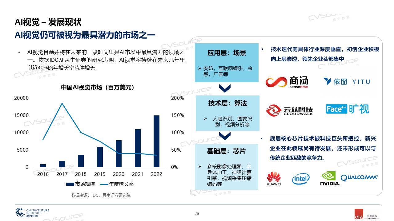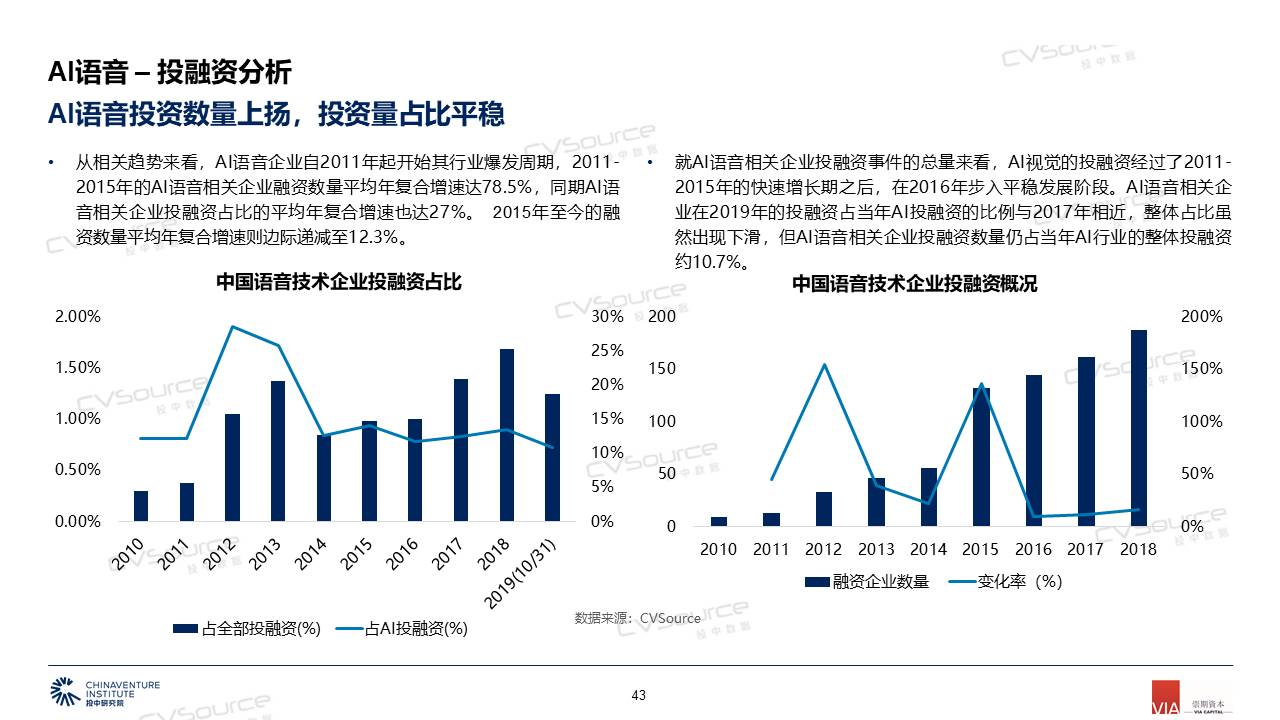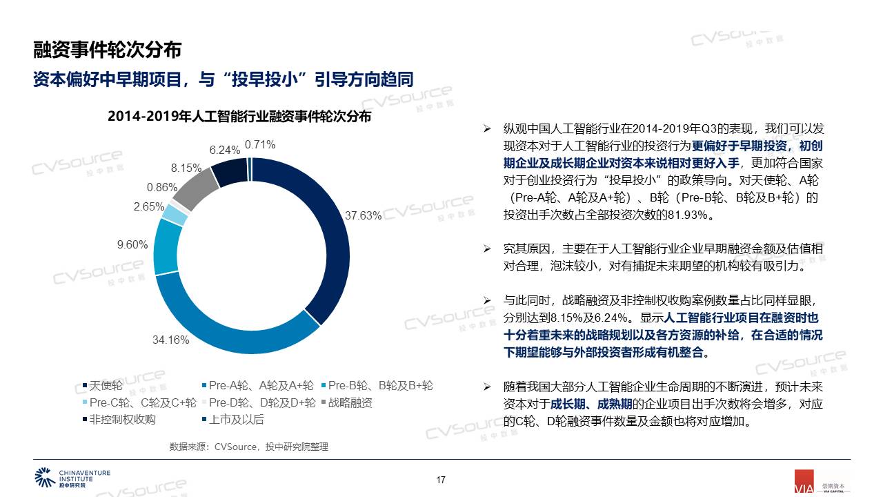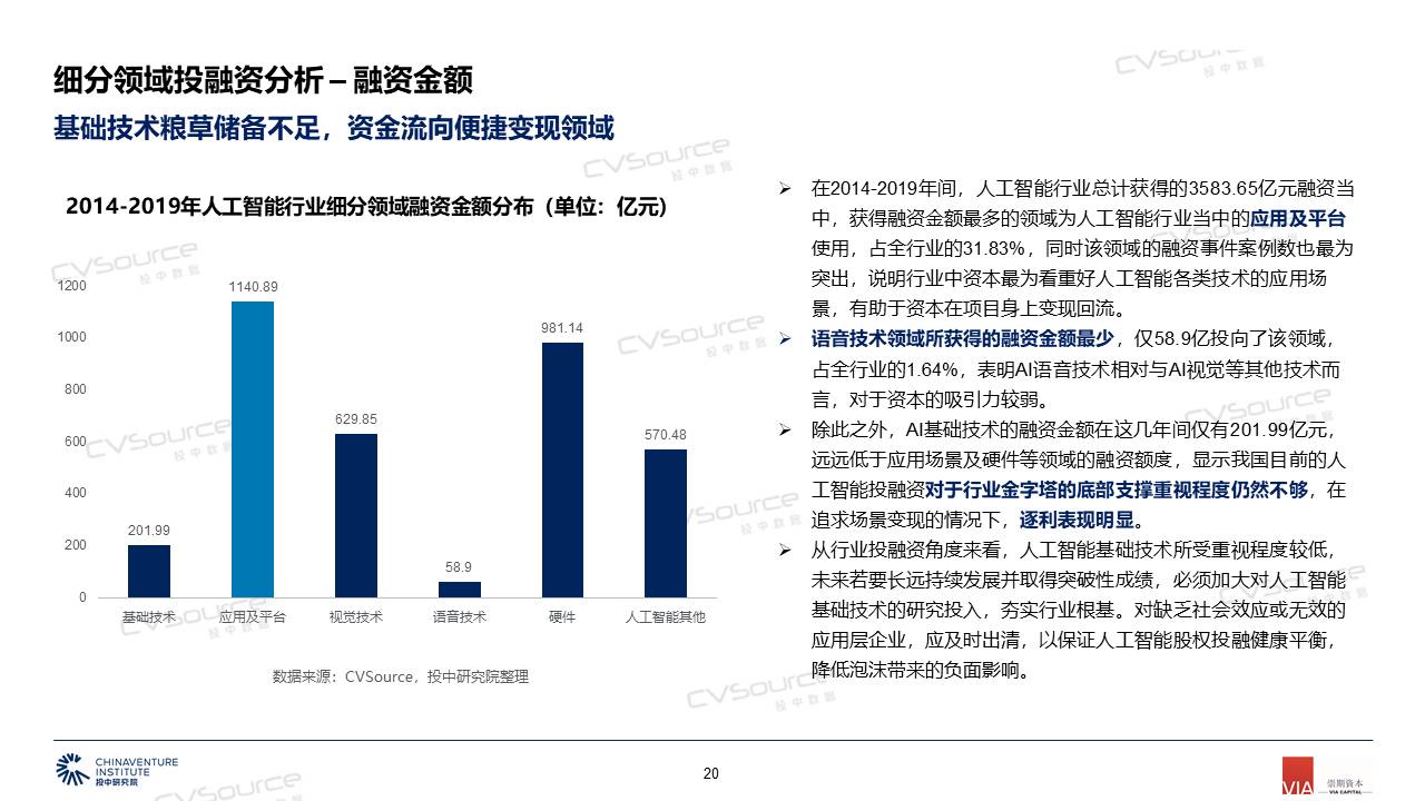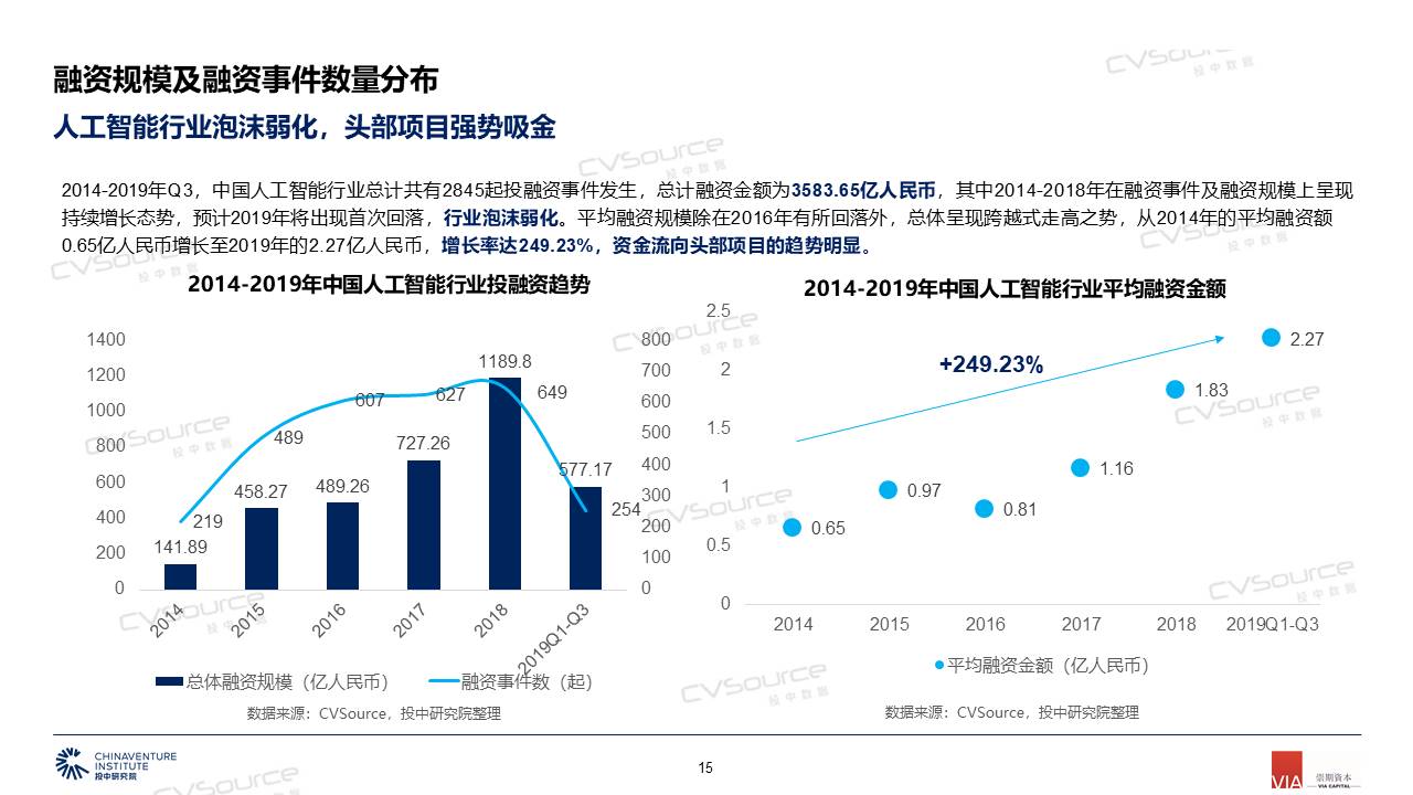 2015年以来,我国密集出台一系列扶植人工智能发展的政策,2017年《新一代人工智能发展规划》 的颁布,标志着人工智能上升至国家战略的高度。2014-2018年,布局人工智能赛道的投资机构数量不断攀升,CAGR为39.4%,2018年突破1000家机构,可见资本市场对人工智能赛道的关注。